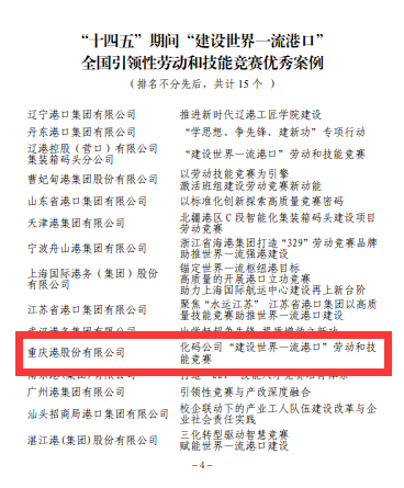 近期,在中国海员建设工会全国委员会开展的“十四五”期间“建设世界一流港口”全国引领性劳动和技能竞赛评选中,ezpay所属化码公司报送的“建设世界一流港口”劳动和技能竞赛案例,获评优秀案例;万州港苏商公司卸船机班组,获评优秀班组,彰显了ezpay产业工人队伍建设的扎实成效与风采。